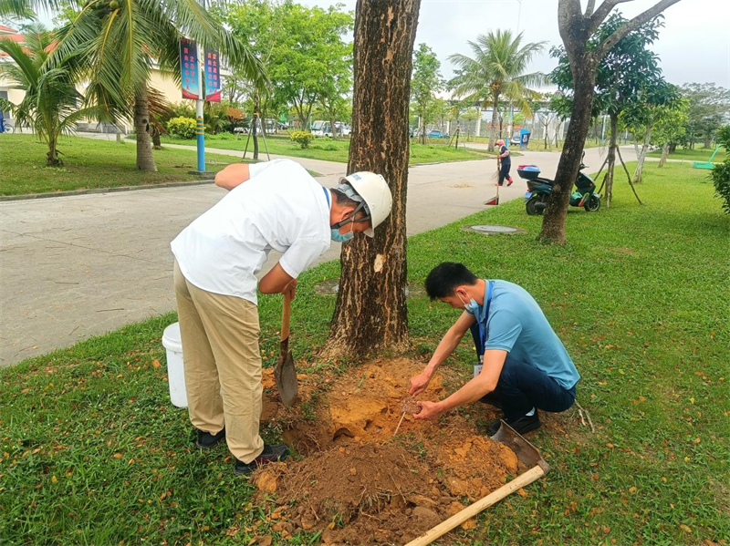 該基地因前期非專業白蟻工作人員不規范防治,導致建筑裝飾物和綠化區域白蟻危害加重。